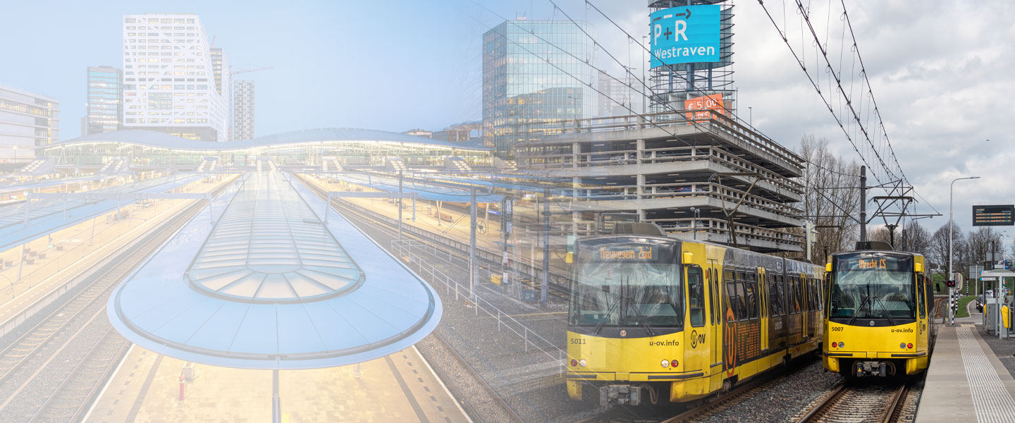 Volg vanaf de snelweg de borden P+R en parkeer je auto bij een van de vier P+R parkeerplaatsen in Utrecht.
