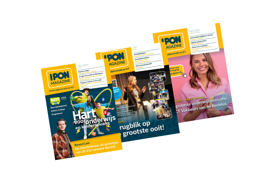 IPON eMagazine is een digitaal magazine dat vier keer per jaar verschijnt en vol staat met praktijkverhalen, relevante artikelen, interviews en handige tips die onderwijsprofessionals inspireren, antwoord geven op hun vragen en helpen in hun professionele groei.